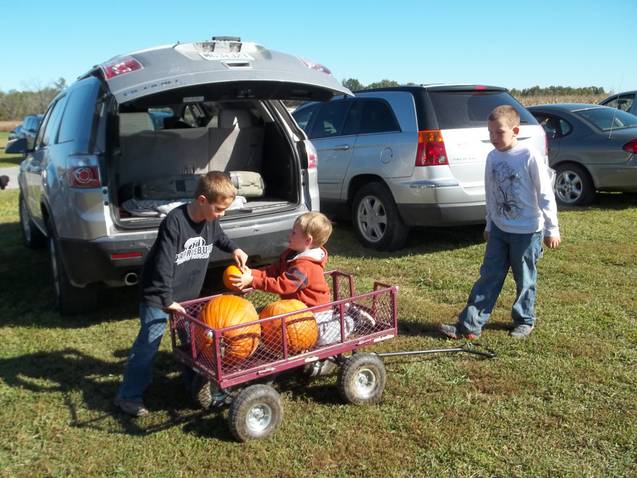 The only thing left to do was pick out their pumpkins.  Owen already had a wagon full of little pumpkins, about 20, that he had picked out for different people.  When I told him Mawmaw would only let us get one, he pointed to one and said, “But that one was for you.”  The little guy knew exactly which one he had picked out for each person.