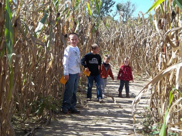 While the boys and I were muddling through the maze, Darla, Owen, and Maci went for a hayride through the pumpkin patch.