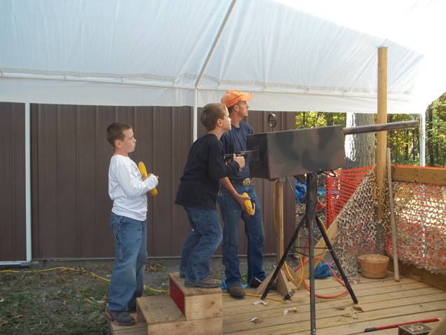 Shooting was sort of like playing golf; there was a lot of slicing and hooking going on with that corn when it came flying out of the gun.  Right when you thought it would hit the target, it would go right or left.  Very frustrating… and costly.  Sam got a direct hit and sent the target swinging, so Jack put everything he had in it (not to be outdone by the little brother) but couldn’t overcome the hook and the slice.