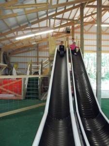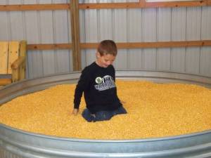 Next was a trek through the big barn to go down the big slides, jump in the bouncy house, and sink into corn.