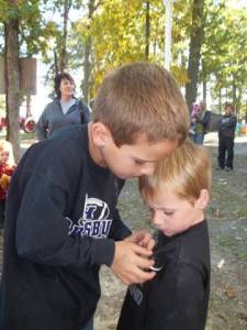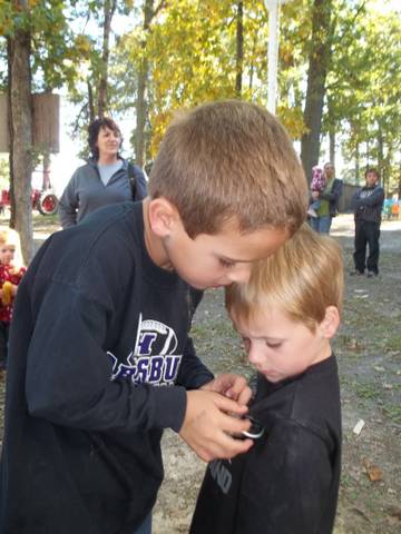 Darla, Owen, and Maci gave up after the first two finds, so the boys and I persevered for another hour and a half trying to find the next four.  It was tough!  Jack found four of them, Sam found one, and I found one.  Mine was pure accident, just about ran into it.  The boys were thrilled that they got their button because we had a couple of let’s-give-up moments.  Each point had a map that only told us where we were, not where the other points were to be found.