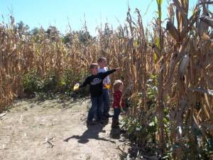 We went around several circles; we went through places we had been previously several times.  I have to admit, sometimes the boys would say, “We’ve already been that way, Gigi!”  But I was just so sure we hadn’t!  At one point as we were walking along the edge of the maze we did contemplate for just a moment doing the unthinkable and walking through the corn to the treeline.  I am very glad we didn’t.
