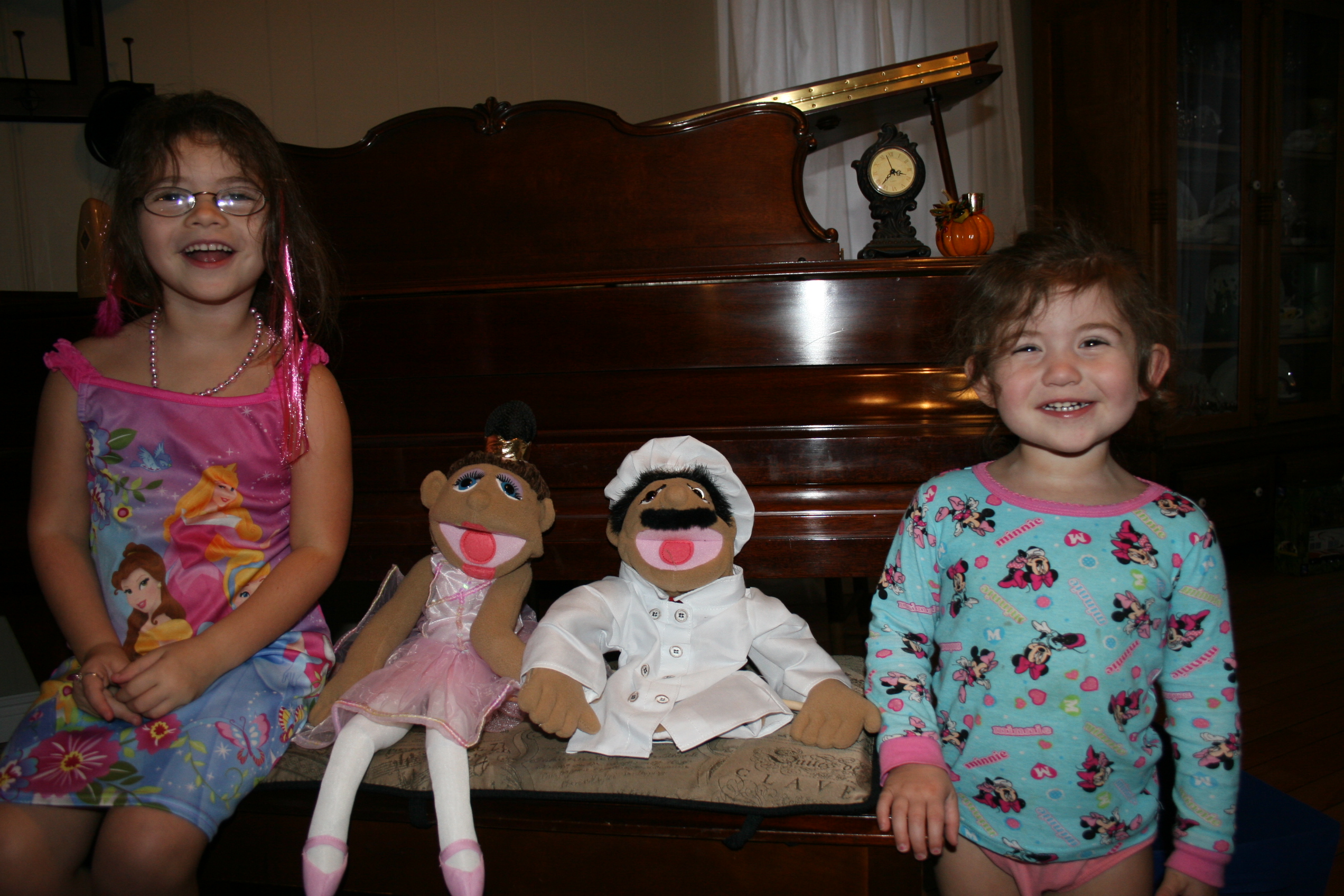 The glare from the piano is, of course, me with the camera. Jeez. The smiling little munchkins are, of course, my sweet grandgirls.