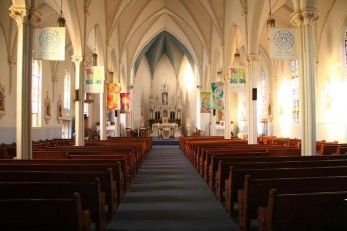 This beautiful, old church was destroyed when the roof fell in -- all but the altar, that is.