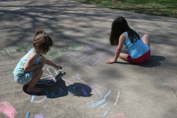 All one needs for a Spring Celebration is a collection of big, fat chalk in several colors.