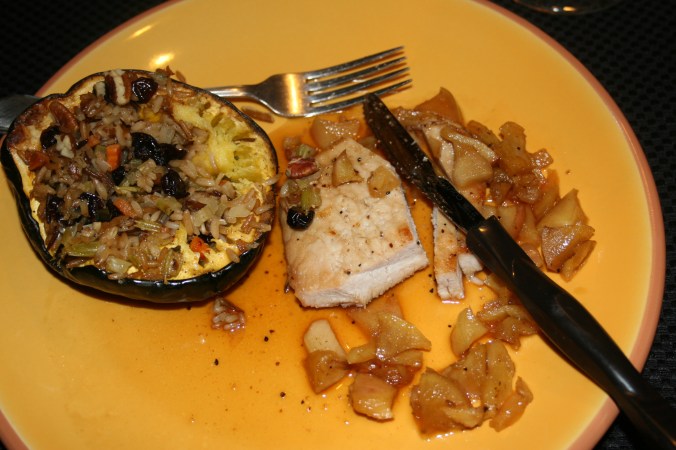 The stuffed squash came from the internet: http://www.chow.com/recipes/13566-roasted-acorn-squash-with-wild-rice-stuffing