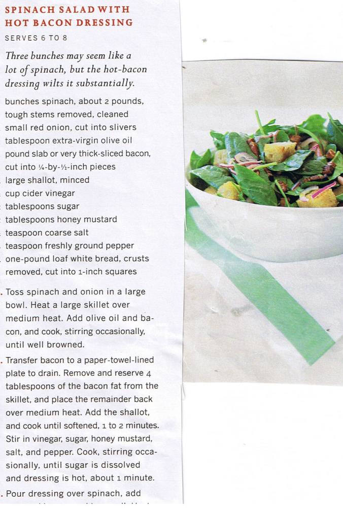 Spinach Salad with Hot Bacon Dressing (from a Martha Stewart magazine I believe)