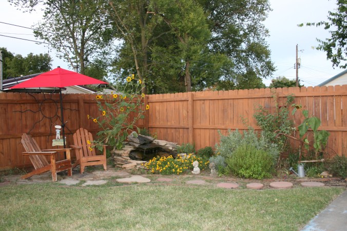 I love to listen to the trickle of the water. The birds love to come and get a drink, so sometimes I try to snap their picture.